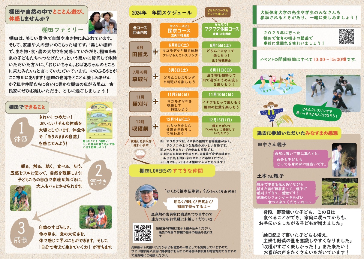 私たち棚田LOVER'sは棚田を育むために、農作業体験・農村ツアー、交流会、講座、商店街で のイベント等を通じて、棚田の大切さや農業の楽しさを伝えています。